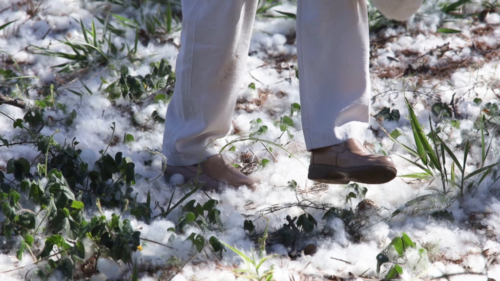 O tocar o solo e a paina leve e solta. Magia que envolveu e conectou a matéria e o corpo, o espaço e a terra.